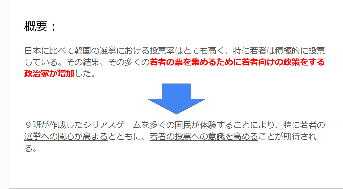 -若者の投票率を上げると、若者の票を取り込もうとして若者向けの政策が増えるということをアピールする
